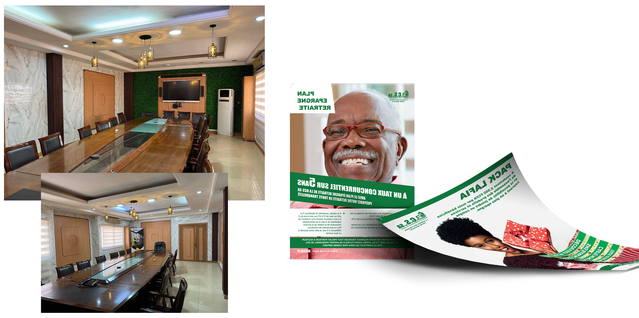 - Création graphique et impression des supports de communication (banderoles, cartes de visite, plaquettes commerciales, kakemono, etc.)